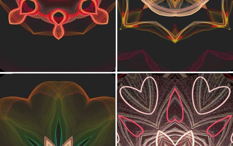 Dancing Kaleidoscope visuals and special Path type Visuals are unique in this App. Many Kaleidoscope, Tunnel and Path type visuals are generated, and one Special Particle Animation is also included.